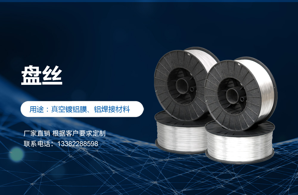 高純度鋁絲:公司主打產品。SGS認證產品,適用于真空鍍鋁。純度99.9%。可為客戶量身定做生產的各盤裝鋁絲。產品應用領域十分廣泛,如:真空鍍鋁膜、電器儀表、電子、家電業、電線電纜業、建筑裝飾業、五金裝飾業、IT電腦業、廣告裝飾業、醫療器械、工藝制品、防腐制品(大型港口、橋梁、碼頭)、食品包裝容器、紡織服裝等。